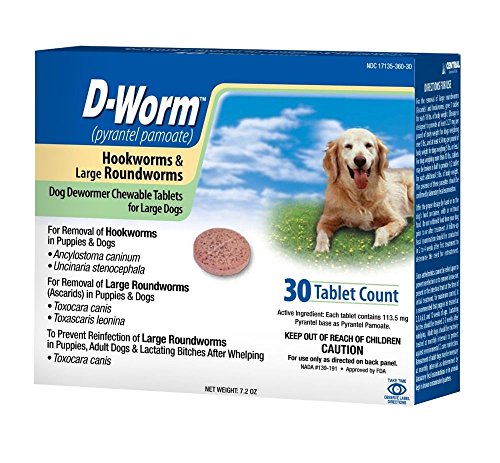 D-Worm chewable tablets contain an active ingredient for removal of large roundworms and hookworms. This product is for large dogs 25 pounds and over, and contains two flavored chewable dog de-wormer tablets. Consult your veterinarian for assistance in the diagnosis, treatment, and control of parasitism.